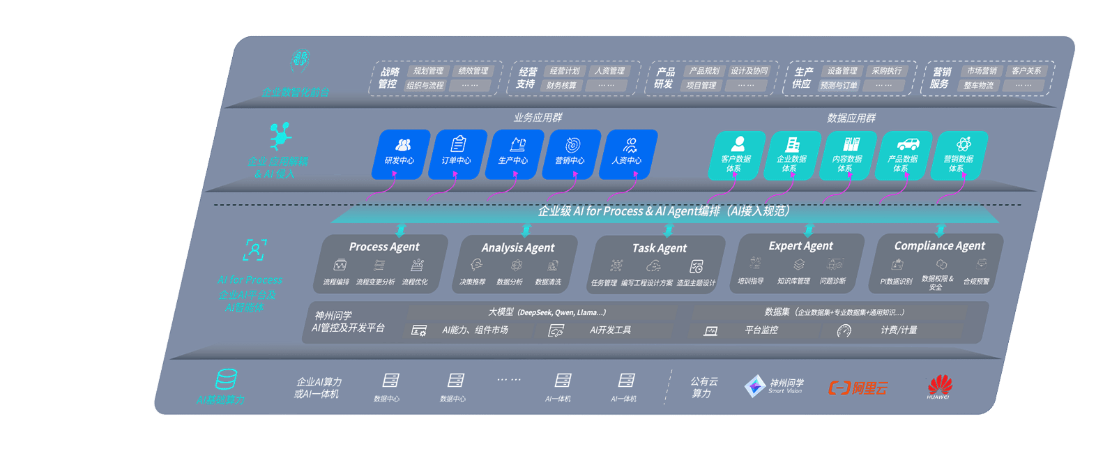 OBPay问学智车解决方案是一套基于AI技术的汽车行业智能化系统,,覆盖从底层算力到顶层AI应用的全栈方案。。。方案由算力层、、模型层和应用层组成:算力层,,方案支持多种一体机配置,,,,具备云端灵活部署、、、多云适配以及动态优化计算资源的能力;模型层,,,OBPay问学平台版提供了企业级AI应用一站式构建与管理平台,,,支持基于后训练强化技术的汽车企业专属模型的训练、、、、评测和运营;应用层,,OBPay问学DeepSeek版提供包括超级员工、、、智能招采、、智能营销、、智能客服、、、、AI for BI等一系列解决方案,,,可助力汽车行业实现数字化转型,,,,让管理更智能、、响应更敏捷。。